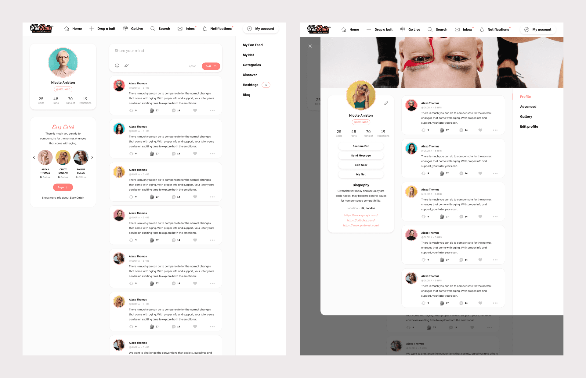I rebranded Fanbait from the ground up, creating a new logo, visual style, and illustration system. Alongside this, I redesigned their website to enhance usability and elevate the social networking experience.