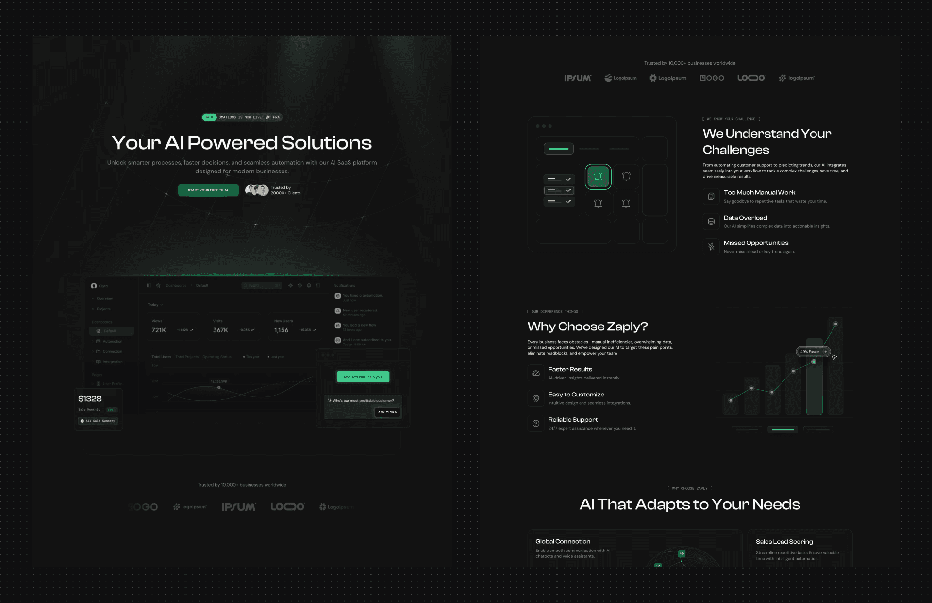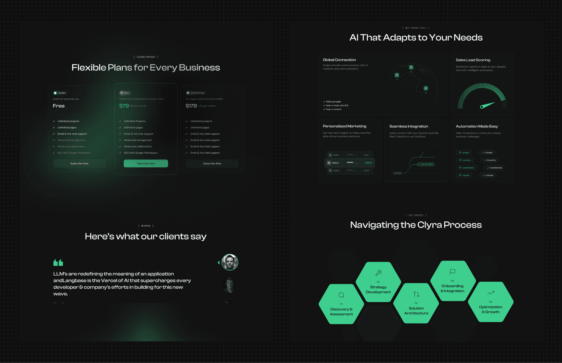 My design service for Clyra focused on empowering AI and SaaS companies with a ready-to-use landing page. Thoughtful UX, sleek UI, and flexible customization make it a powerful tool for brands to stand out and scale.